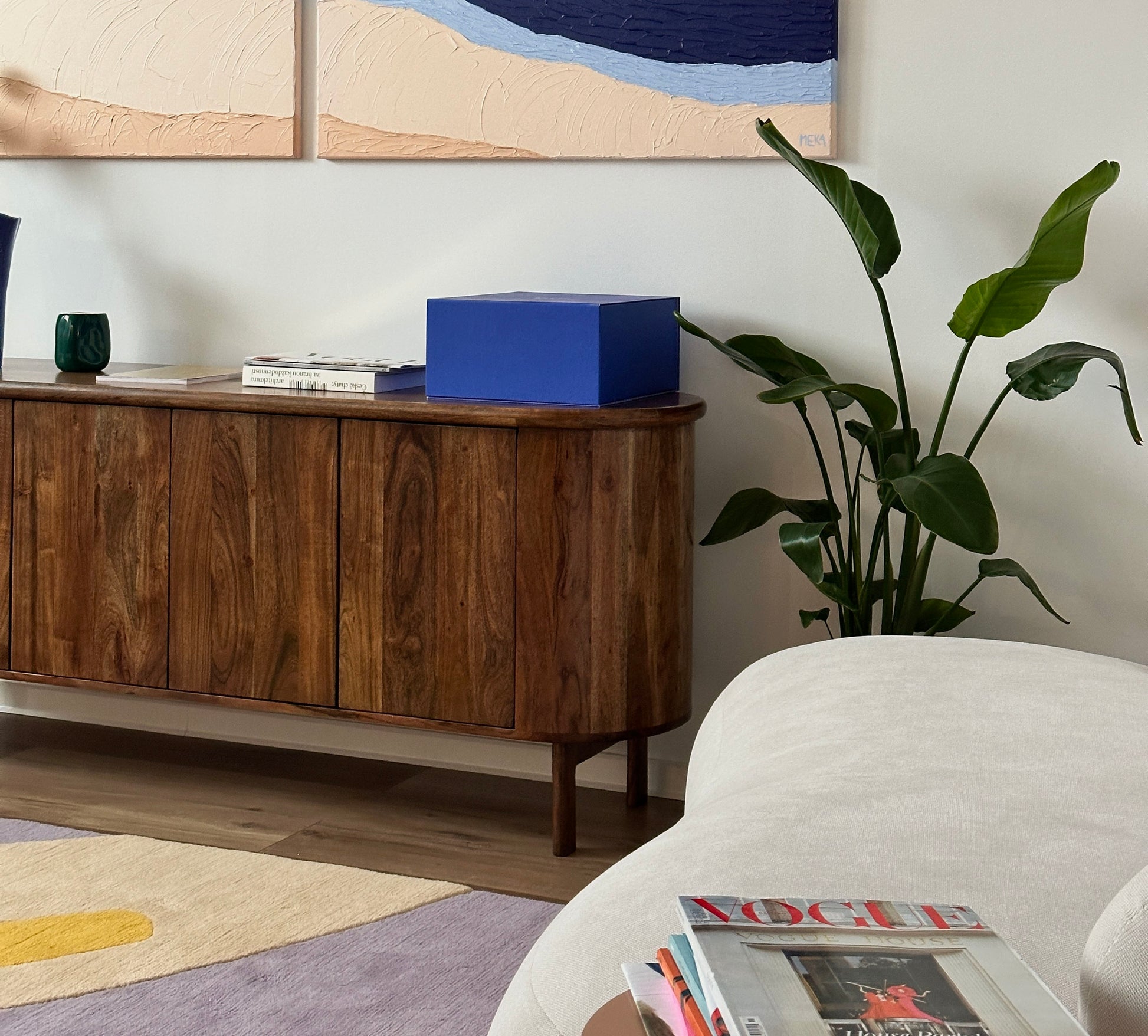The Bia chest of drawers is the embodiment of natural elegance and craftsmanship. Its gently rounded shape and rich solid wood grain create a harmonious balance between modern design and timeless aesthetics. The warm wood shade brings a sense of coziness and natural luxury to the interior.