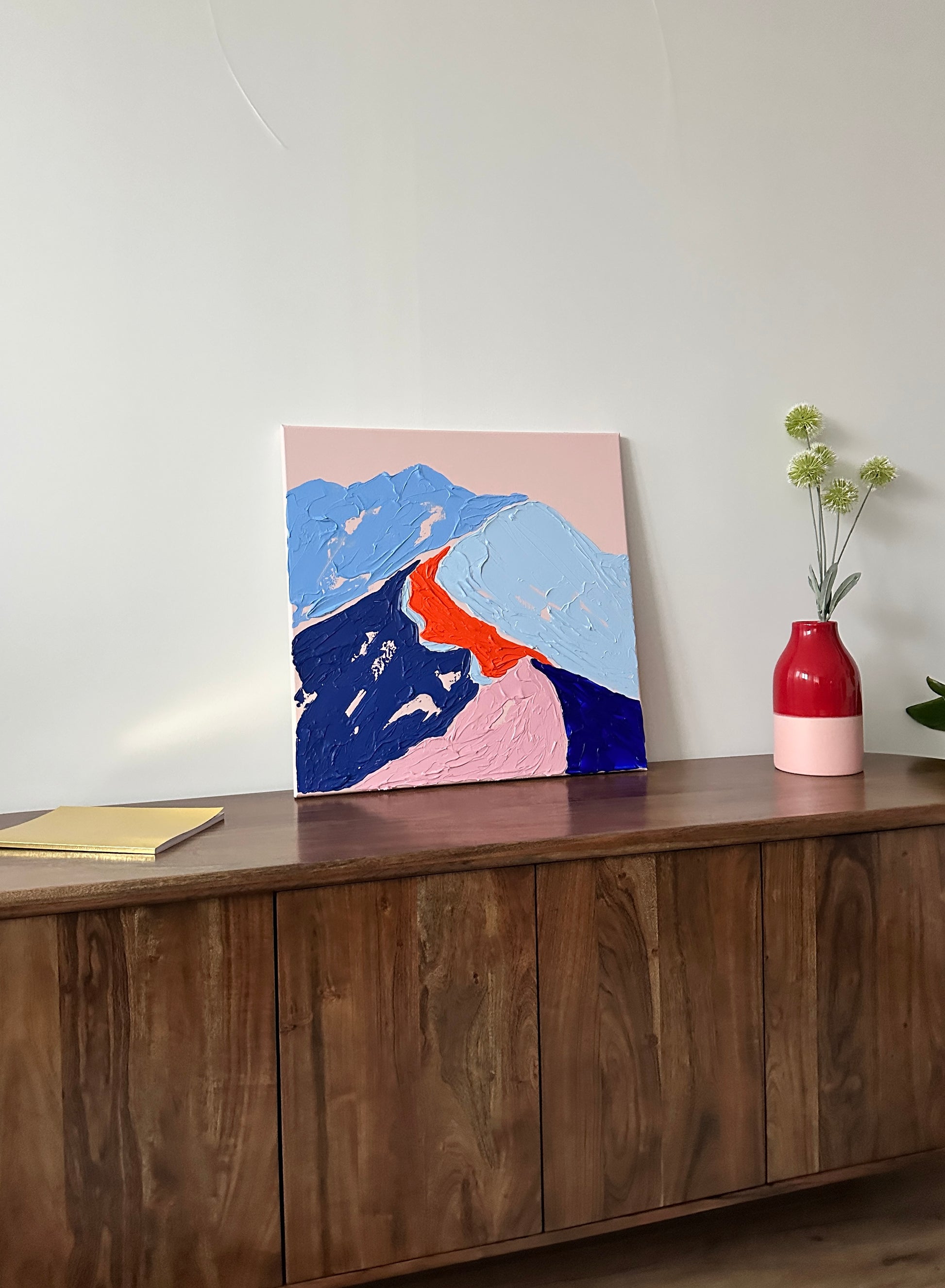 Meka creates her artwork using the 'thick-paint' technique, where acrylic paint is applied to the canvas in thick layers using a spatula. Meka is fascinated by the harmony of colors. Prefers clearly defined colors separated from each other. Each layer has its own, defined place. Her favorite subject is nature such as mountains, plants, animals partially combined with abstract elements.